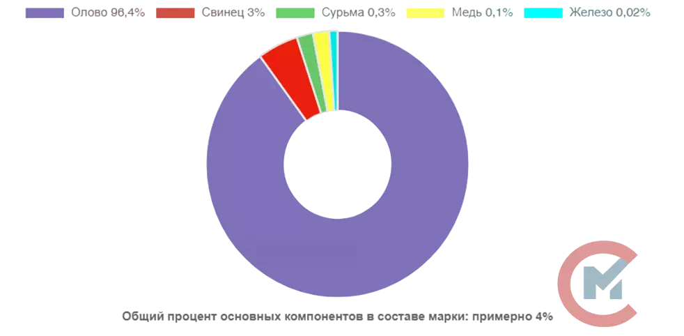 Обозначение марки О4: буква «О» указывает на то, что данный материал относится к категории олова. Цифра «4» означает процентное содержание примесей в металле.
